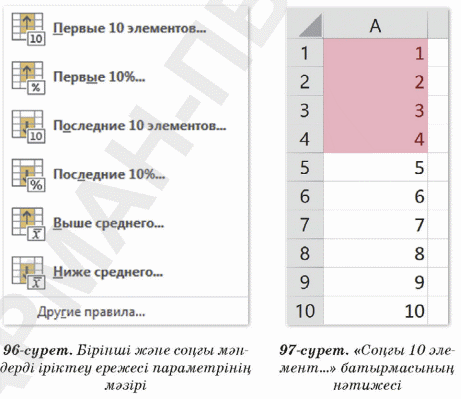 7.2.2.4 электрондық кестеде шартты пішімдеуді қолдану. |