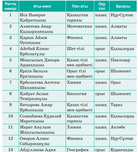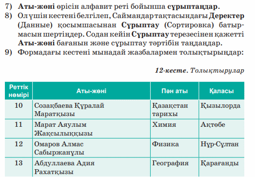 9.2.2.3 Деректерді іздеу, сұрыптау және сүзгілеуді жүзеге асыру |