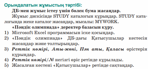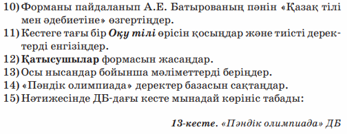 Практикум. Деректер базасымен жұмыс. «Пәндік олимпиада » деректер базасын құру |