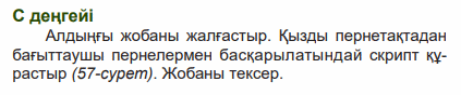 1-тапсырманы орындайды 2-тапсырманы орындайды 3-тапсырманы орындайды Сергіту сәтін жасайды Тапсырманы орындайды 4-тапсырманы орындайды |