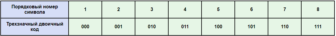 Учащиеся делятся на группы по 3-4 человека. В группах учитель предлагает обсудить ответ на вопрос: Сколько символов можно закодировать тремя битами?