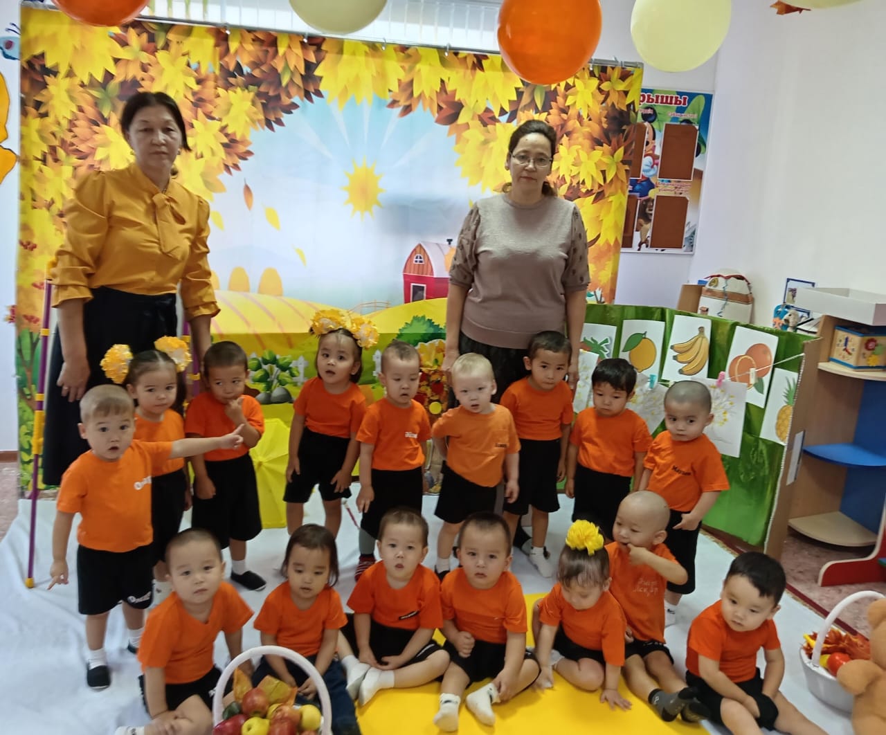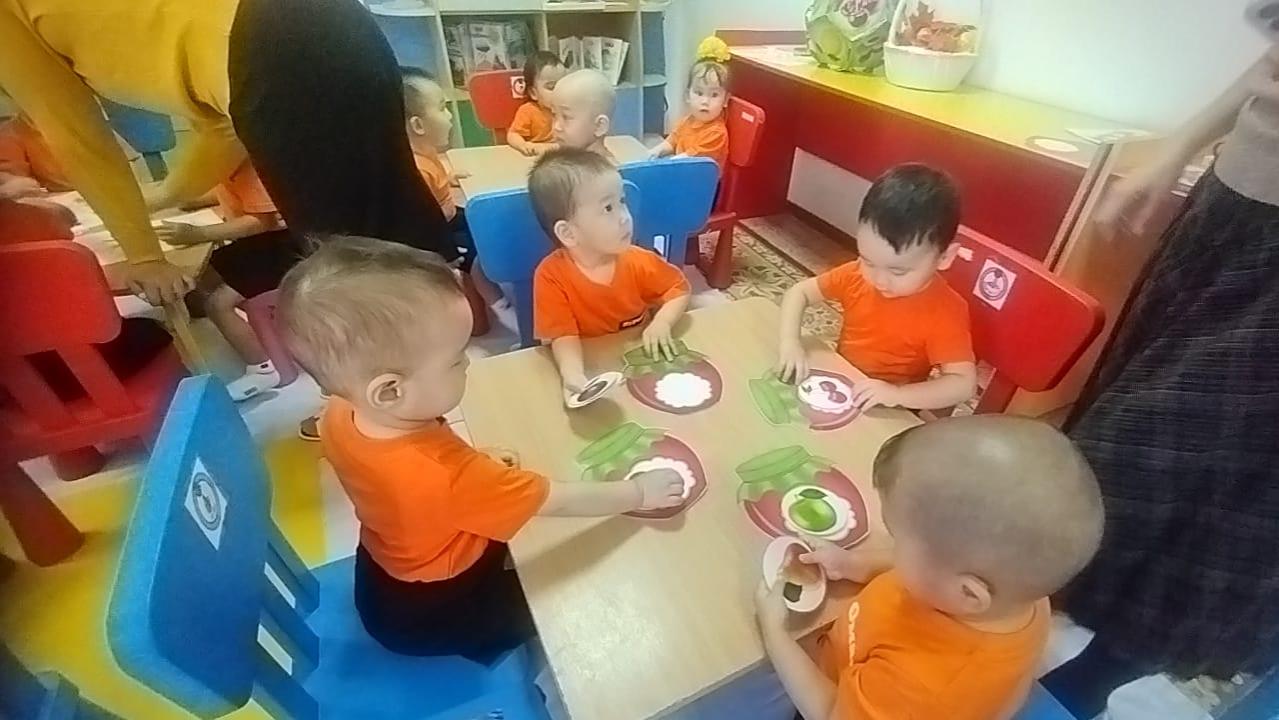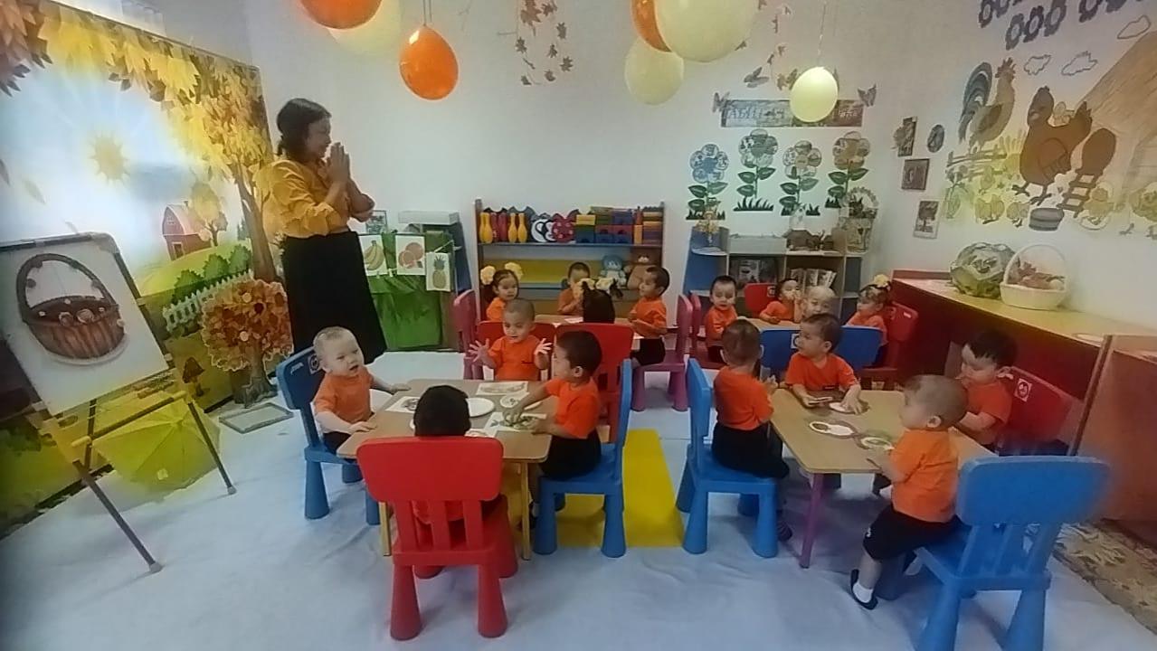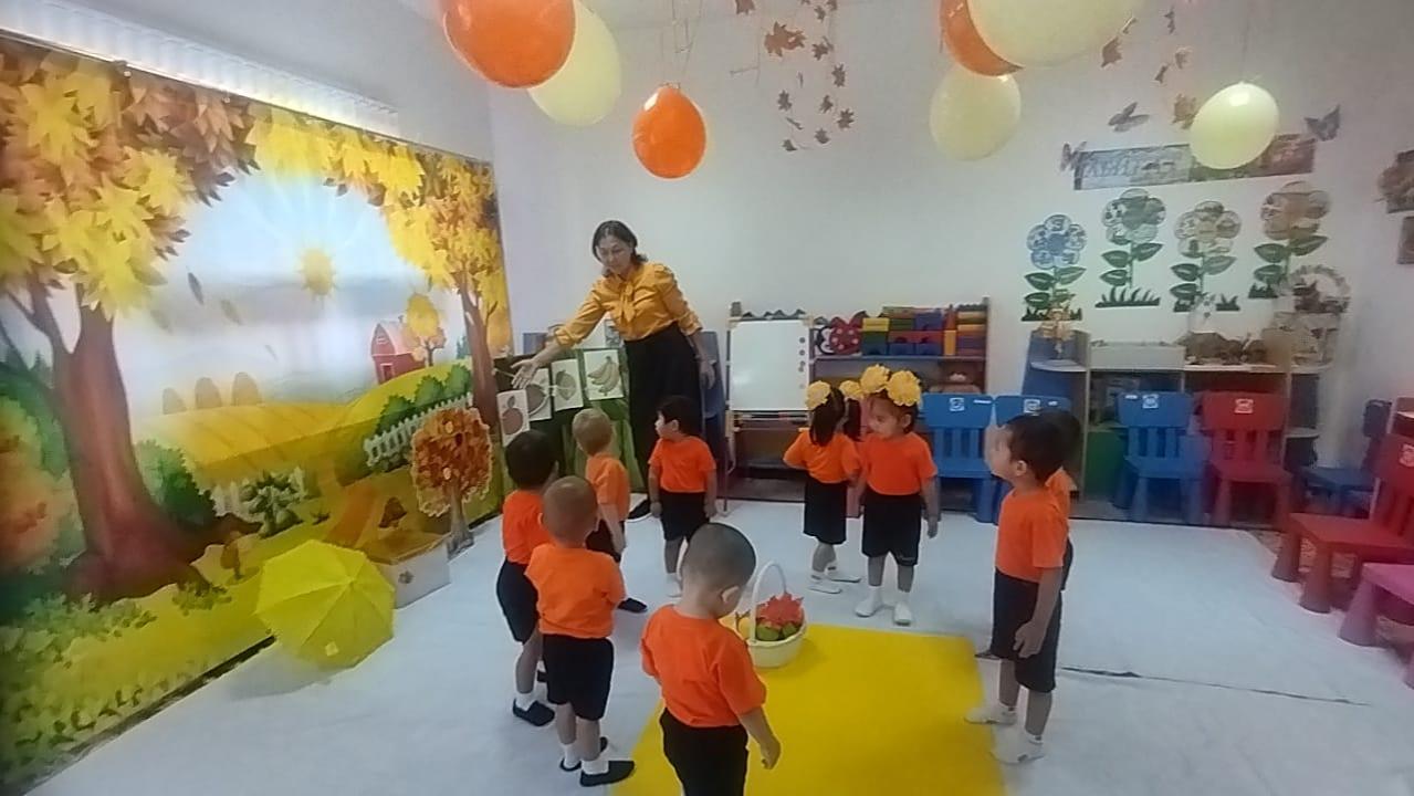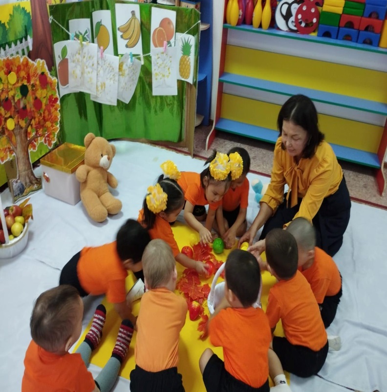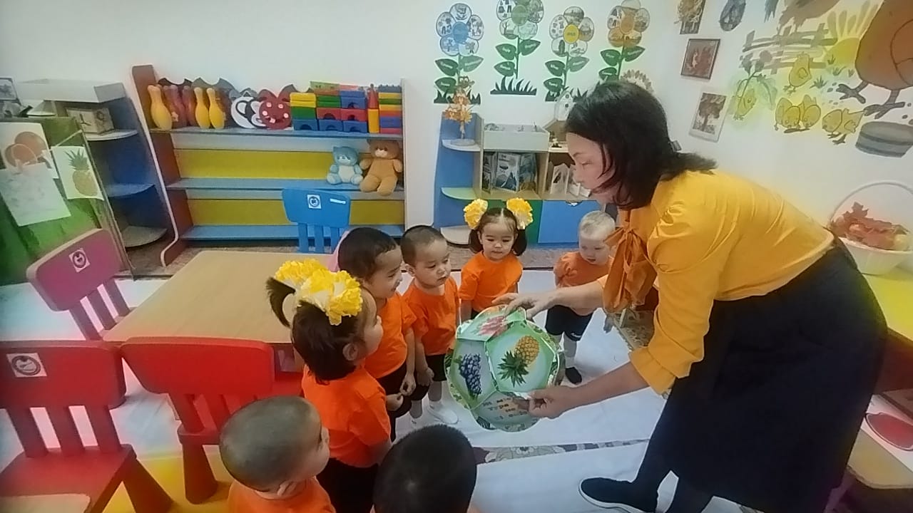 Тәрбиеші: Жемістерді пішініне, көлеміне, түсіне, дәміне, иісіне, қабығының құрылысына қарай топтастыруға болатынын білдік