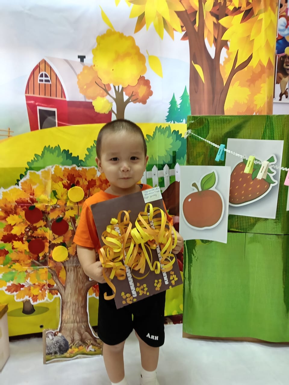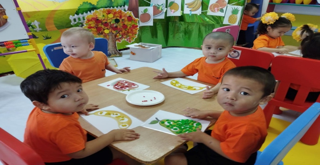 Тәрбиеші:Ендеше тапсырмаларды орындау арқылы жемістерді жинап ,оны қонжыққа сыйлаайық.Тапсырмаларды орындау үшін Шығармашылық бұрышына барамыз.