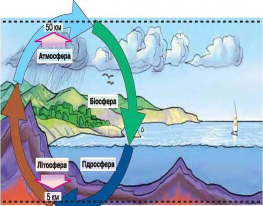 І. Жеке жұмыс "Дұрыс жауапты тап"! (Оқушылар интербелсенді тақтада берілген тапсырманы орындайды) Көп нүктенің орнына қажетті терминді жазыңыз. a. ................- жердің ауа қабығы ; b. ...............- жердің су қабығы; c. ...............- жердің тіршілік қабаты; d. ...............- жердің сыртқы қатты қабаты. ІІ. Жұптық жұмыс «Бір минуттық әңгіме» әдісі Суреттегі географиялық қабықтар арасындағы байланысты сипаттап, түсіндіру