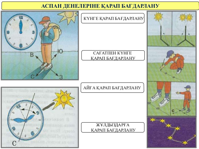 бағыт табу – солтүстік, оңтүстік, батыс, шығыс.