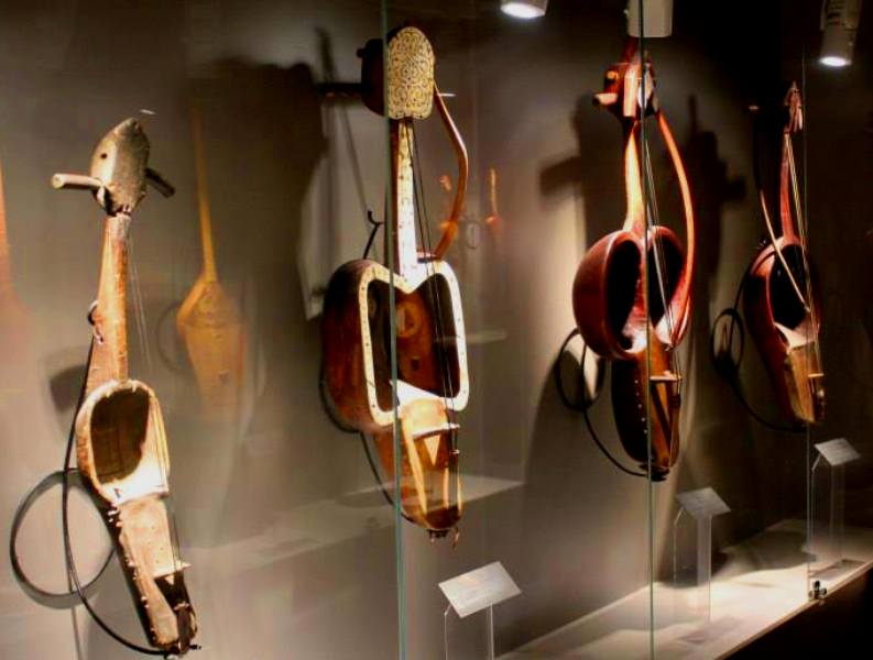 Осы музейдің 1868 жылы жазылған коллекциялық тізімінде сыбызғының үш түрі жайында, қылқобыз бен домбыраның бірнеше түрі, сондай-ақ жеті ішекті жетіген туралы айтылыпты. Суреттеп жазылуында бұл аспаптар: цибизга, кубыз, думбра және ятага деп аталған.