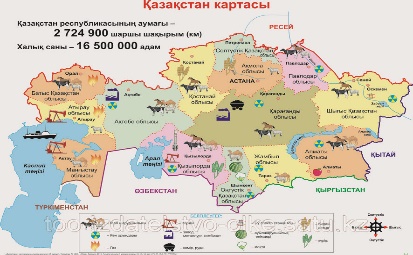 Тақырыпқа назар аударылады. «Жетістігімді еліме арнаймын!» -Осы тақырып бойынша үш топқа үш конверт тарқатылды. Конветтің ішіндегі тапсырмаларды оқушылар өз ойларымен орындау керек. 1- тапсырма Қазақстанның картасын «Мазайка» әдісімен құрау, пайдалы қазбаларын, көршілес мемлекеттерін, Қазақстан облыстарын ретімен орналастырып, айтып беру.