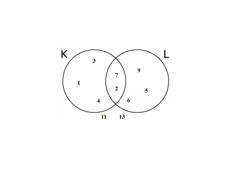 K=1; 2; 3; 4; 7 жəне L=2;5;6;7; 9 жиындары берілген.