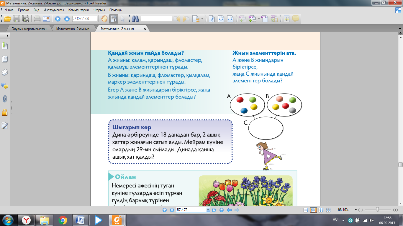 Сабақтың тақырыбы: Жиынды біріктіру және бөліктерге бөлу |