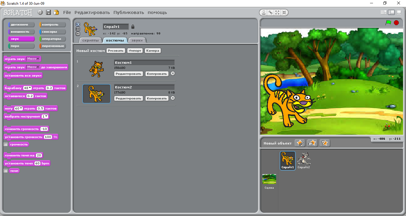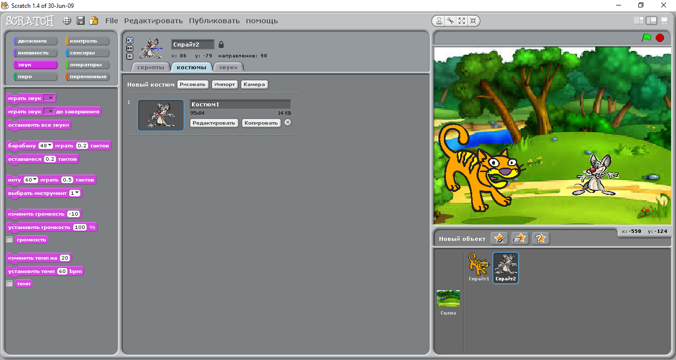 Scratch ойын ортасының негізгі нысаналарын анықтайды |