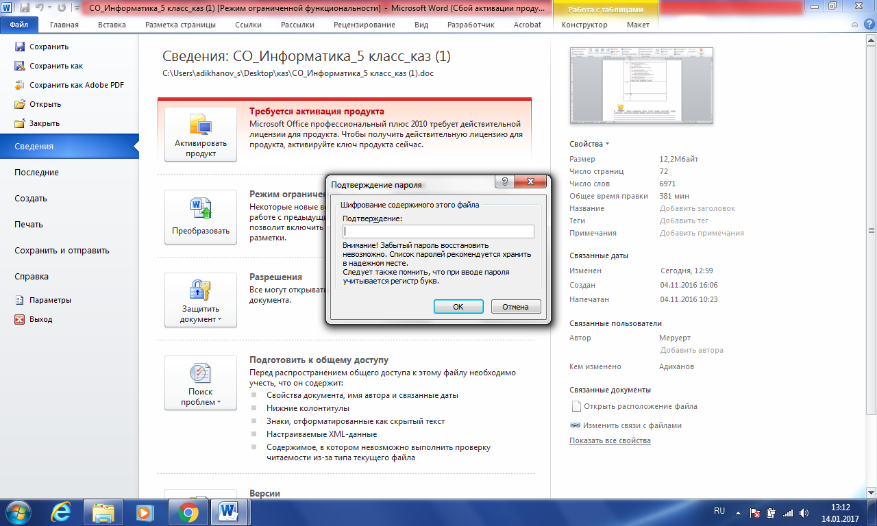 5.4.2.2 Құжатқа құпия сөз орнату 5.1.3.1 Ортақ қолжетімді файлдарды орналастыру, өзгерту, жүктеу |