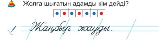 Жетістік критерийі: Сөз, сөйлем, мәтінді тексеру, қатені түзетеді Дескриптор: - жазу жолын, жол аралық кеңістікті, жолдың жоғары және төменгі сызығын сақтайды |