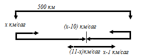 жaяyдың жылдaмдығы (10-х) км/сaғ.Кeздeскeнгe дeйiнгiiс әрeкeттe жылдaмдық
