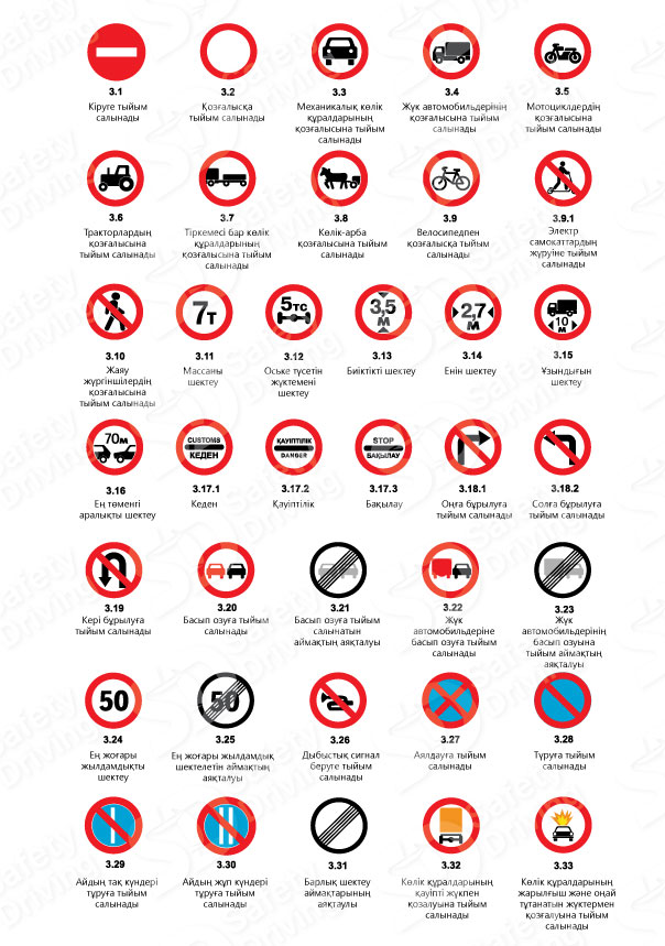 Мұғалім: Сілтеме: https://youtu.be/UnJhboy5_HU Жол белгілері – көлік қозғалысын реттеу және көлік жүргізуші мен жаяу жүрушіге маңайдағы жол жағдайы жөнінде ақпарат беру мақсатында көше мен жол бойына қойылатын арнайы белгілер. Жол белгілерінің бекітілген суреті мен техникалық сипаттамалары «Жол белгілері мен сигналдары туралы» Конвенция (Вена, 1968) мен осы Конвенцияны толықтыратын Еуропа елдері келісімі (Женева, 1971) талаптарына сәйкес жасалады. 1998 жылға дейін Қазақстанда 1987 жылы КСРО-да қабылданған жолда жүру ережелері қолданылды. 1998 жылдан бастап республикада жолда жүрудің жаңа ережелері қабылданған. Осы ережелерге сай жол белгілері мемлекеттік стандарттар негізінде анықталады. Бұл стандарттар бойынша, жол белгілері 7 топқа бөлінеді: Ескерту белгілері жолдың қауіпті бөлігінің жақындағанын хабарлайды. Ол айналасы қызыл жолақпен көмкерілген ақ түсті тең қабырғалы үшбұрыш түрінде жасалып, ортасына қауіп түрін айқындайтын шартты белгілер салынады. |