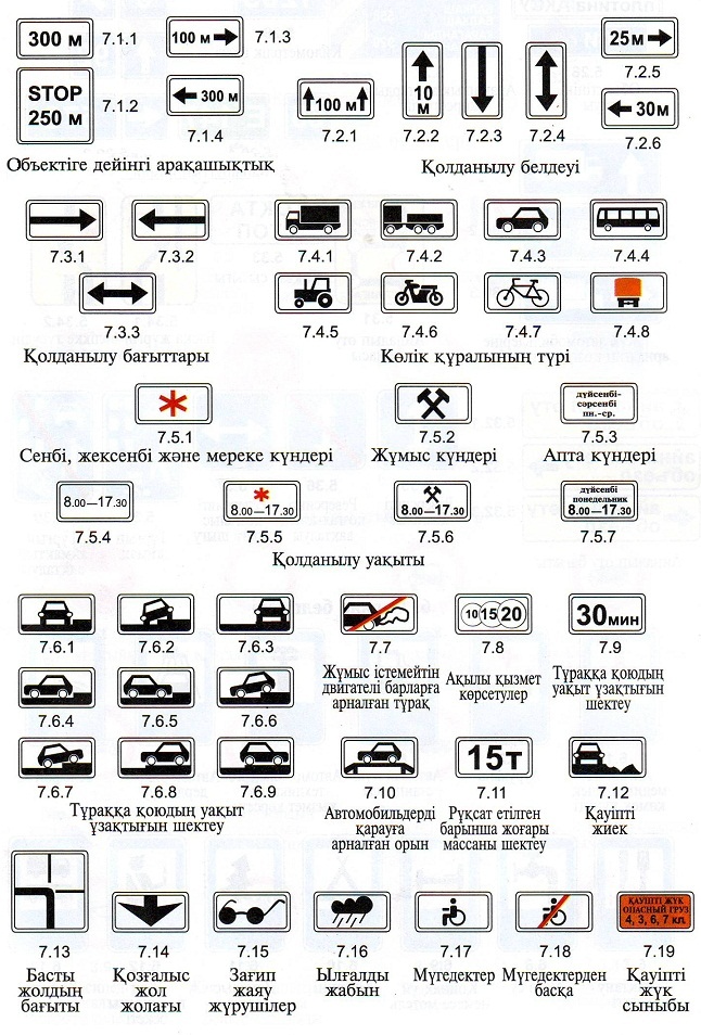 анықталады. Бұл стандарттар бойынша, жол белгілері 7 топқа