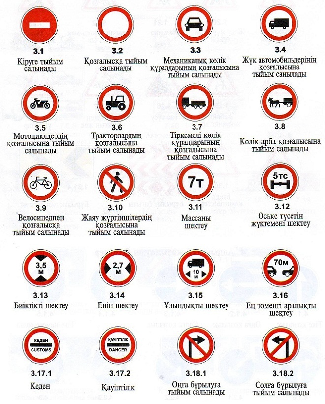 белгілерінен тұрады. Тыйым салу белгілері. Тыйым салу белгілері