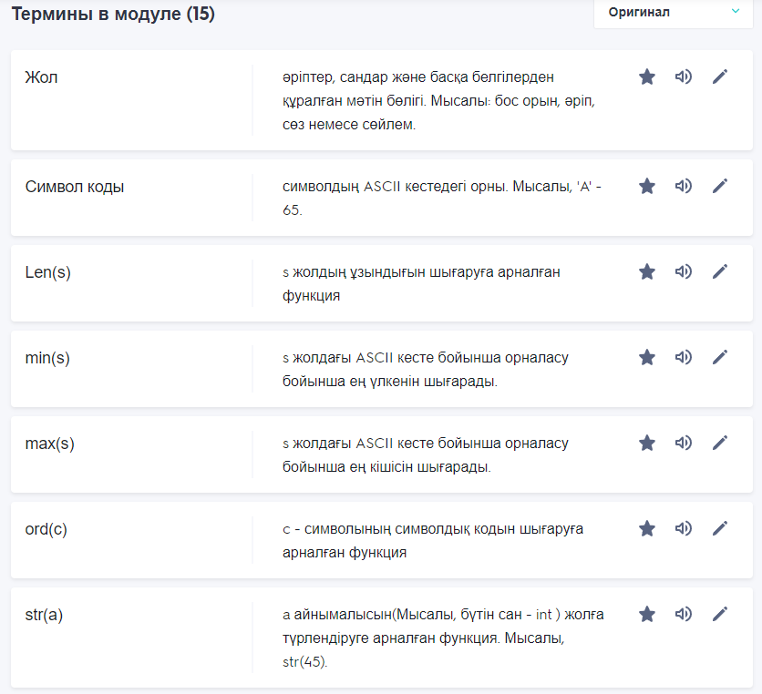 Терминдер English Қазақша String Жол Length Ұзындық Edit Өзгерту,