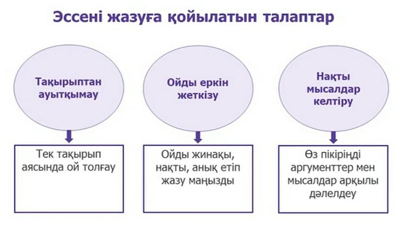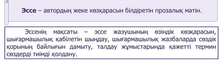 5.3.3.1 шығармадағы кейіпкерді өзіндік құндылығы тұрғысынан талдап, әдеби эссе жазу. |