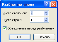 Енді, кестеміздің бірнеше ұяшығын бір ұяшыққа біріктіруді және бір ұяшықты бірнеше ұяшыққа бөлуді үйренейік. Бірінші жағдайда ұяшықтарды белгілеп алып, Кесте – Ұяшықтарды біріктіру (Таблица –Объединить ячейки) командасын орындаймыз немесе Кесте және шекара ( Таблицы и границы ) тақтасындағы батырманы шертеміз. Ал, екінші жағдайда Кесте – Ұяшықтарды бөлу (Таблица –Разбить ячейки) командасын орындаймыз немесе батырмасын шертеміз. Осы кезде Ұяшықтарды бөлу диалогтік терезесі ашылады. Онда бағандар мен жолдар саны мәндерін енгіземіз де Ok батырмасын шертеміз.
