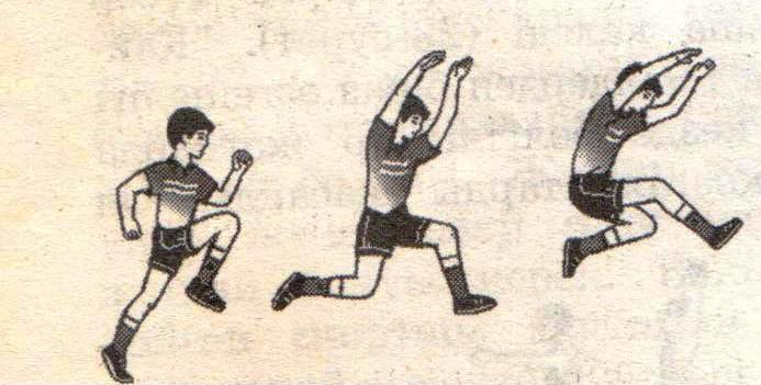 2) ұшу кезінде екі аяқты бүгу 3) ұшу кезінде екі аяқты қайшыландыру, яғни ұшып бара жатқанда екі аяқты ауада кезек-кезек сермеу