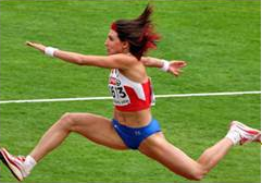 Постермен жұмыс. Оқушыларға үш қарғып секіруден Олимпиада чемпионы Ольга Рыпакованың олимпиада ойындарында көрсеткен өнерінен үзінді беріледі. Белгіленген уақытта постерге Ольга Рыпакова жетістікке қалай жеткендігі туралы өз ойларын сатылап жазып шығады. Жалпы дене жаттығулары: Жүру бағытында орындалатын жаттығулар: 1.Екі қолды жоғары,аяқтың ұшымен жүру. 2.Екі қол белде,өкшемен жүру. 3.Қол желкеде,жартылай отырып жүру. 4.Қол тізеде,толық отырып жүру. Жүгіру бағытында орындалатын жаттығулар: 1.Тізені жоғары көтеріп жүгіру. 2. Өкшені жамбасқа лақтырып жүгіру. 3.Аяқтың басын алға сілти жүгіру. 5.Сол қапталмен қолды артқа айналдыра жүгіру.. 6.Оң қапталмен қолды алға айналдыра жүгіру. |