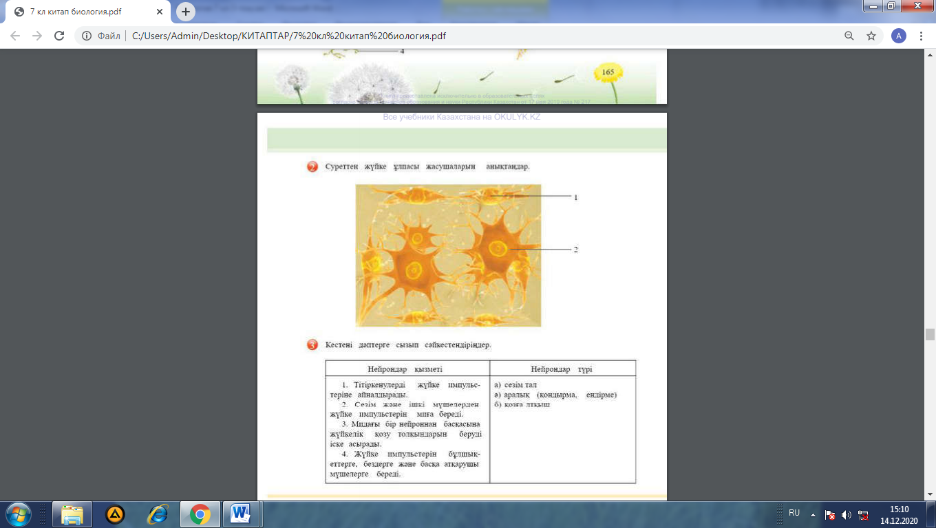 2-Тапсырма. Кестедегі нейрондардың қызметі мен түрін сәйкестендіреді.