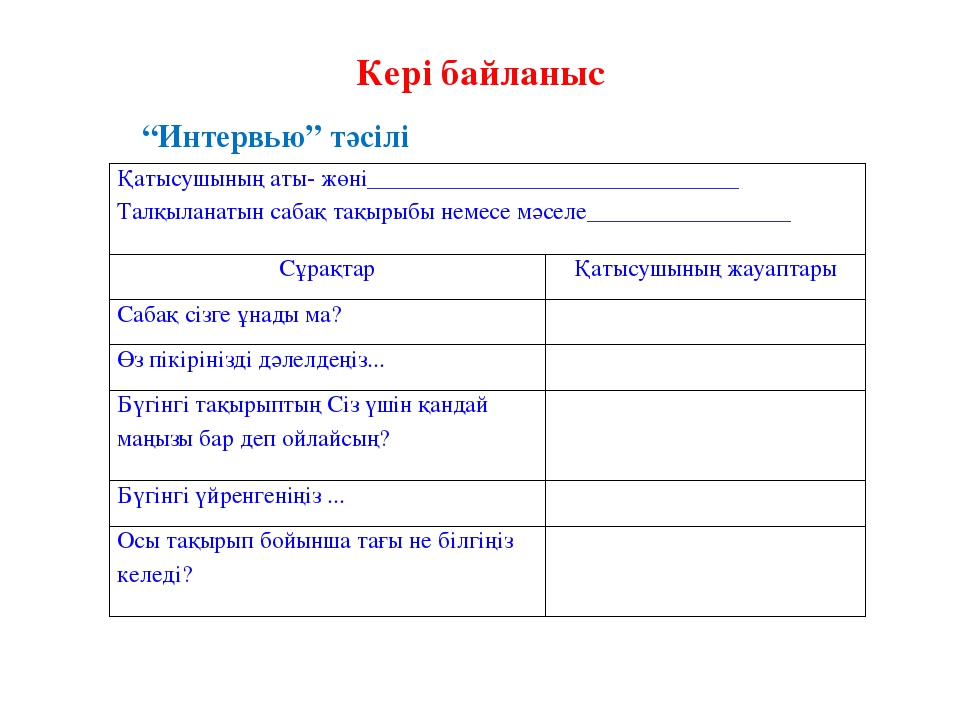 анықтайды. А4 парағы 15 мин Сабақты бекіту тапсырмалары.