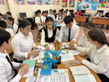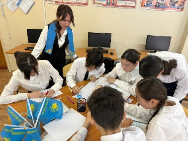 1.Сөздікпен жұмыс. Жаңа сөздермен таныстырады, оқушыларға қайталатады, жаңа тақырыпқа байланысты сөздіктермен жұмыс. Жазылым 3-тапсырма Топтық жұмыс «Жасанды интеллект» әдісі арқылы мәтінді тыңдау. Сергіту сәті Айтылым Жұптық жұмыс 3-тапсырма. «Жүйрік зымыран» әдісі. Жазылым. Тапсырма «Зымыран ұшқындары» әдісі. |