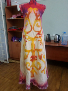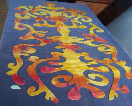 Киім бетіне қырқып алынған оюды түзу орнын тауып, орналастырамыз.Киімге ою енгенше ұзақ уақыт сабынды сумен ысқалаймыз. 3 кезең ою енген кезде киімді қолымызбен күшімізді салып илейміз. Кейін киімді таза суға салып шаямыз. Бізде киімдегі ою дайын. Алда сиздерге қызықты да әдеми бұйымдар жасаймыз деп сенемін.