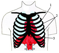 1 – жүрек; 2) – қабырғалар 3 –көкет (диафрагма)