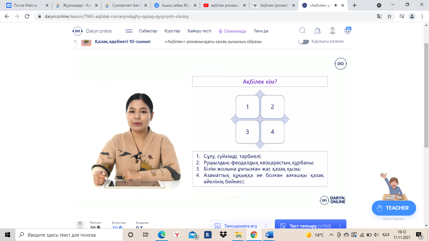 Жүсіпбек Аймауытұлының "Ақбілек" романындағы ғаламдық мәселелер 10-сынып ҚГБ