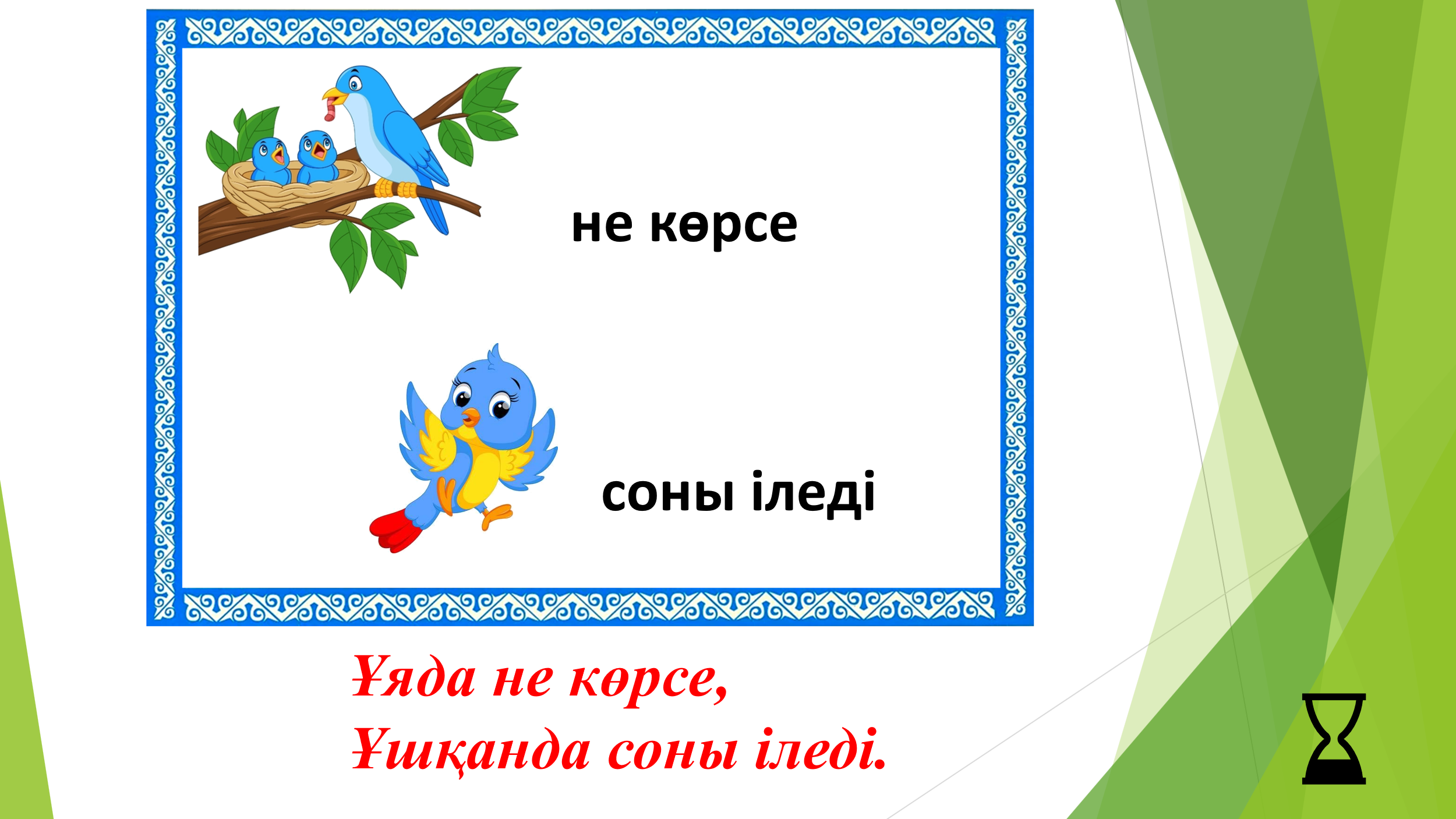 Хан баласы ханзада Болды ғашық ханшаға. Алып ханнан хабар, Ханшайымды табар. Жеңімаз оқушыға алғыс хат тапсырылады. Ақынмын деп мен қалай мақтанамын, Халқымның өз айтқанын қайталадым. Күпі киген қазақтың қара өлеңін, Шекпен жауып өзіңе қайтарамын-дегендей халқымыздың сөз маржандарын бүгінгілей сабақта қайталап,зердемізге тоқып үлгі алайық.