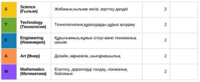 ДАМЫТУШЫЛЫҚ МАҚСАТ: -Оқушылардың шығармашылық және логикалық ойлау қабілеттерін дамыту. -Ғылыми әдістерді қолдануға және нақты мәселелерді шешуге ынталандыру. -Командамен жұмыс жасау, талқылау және зерттеу дағдыларын жетілдіру. Бұл жобаны жүзеге асыру оқушылардың STEM салаларына қызығушылығын арттырып, олардың теориялық білімдерін тәжірибеде қолдануға мүмкіндік береді.