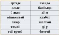 екі бағанға сөздер жазып, балаларға көрсетіп, оқытып қайталап сұрау