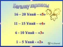 Мұғалім оқушыларды «Жапондық бағалау» әдісі арқылы бағалайды. Яғни «Дұрыс келісемін» |