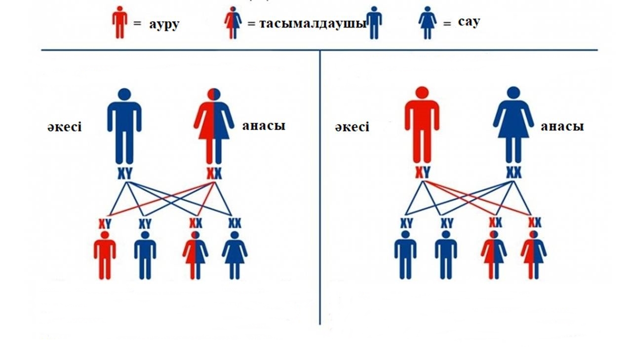 тіркесіп, қалай тұқым қуалайтынын сызба арқылы көрсетеді; - Х-хромосомада болатын белгіні әкесінен алуға болмайтынын мысал-есептер арқылы дәлелдейді. |
