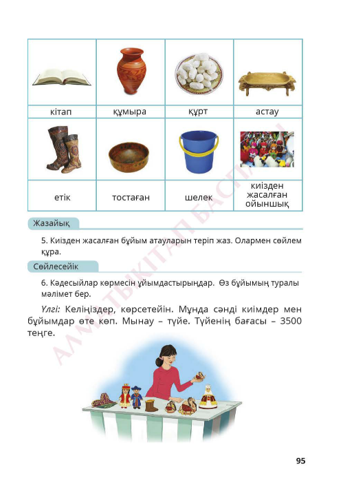 Дескриптор: -суреттегі бұйымдарды жазады.2 -1бұйымдардың ерекшелігін анықтайды-2 Жалпы балл-4 Дескриптор: -Ақпаратты толтырады-1 -нақты мәлемет береді -1 Жалпы балы-2 |
