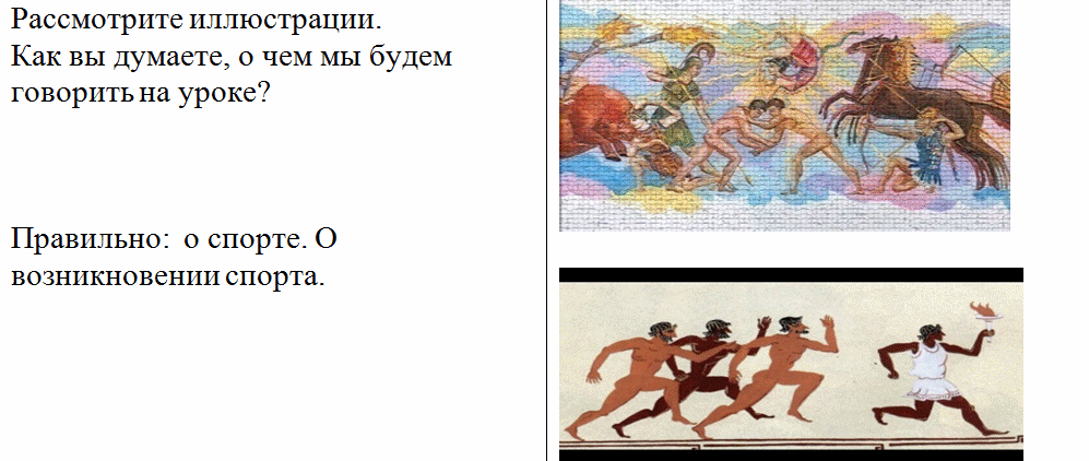 І.Организационный момент. Создание коллаборативной среды. Учитель приветствует учащихся на трех языках: казахском, русском, английском Стратегия «Шаг за шагом». Проверка домашнего задания. ІІ. Актуализация знаний. Стратегия «Прогнозирование» – Рассмотрите иллюстрации. Как вы думаете, о каком всемирном празднике пойдёт речь на уроке? Какие виды спорта изображены на иллюстрациях? Как вы думаете, о чем мы будем говорить на уроке? |