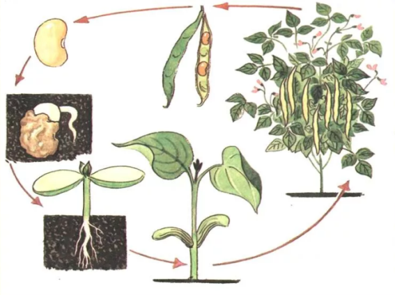 (К) Физминутка. Нет, не ветер, чудо-ветер, И не лес шумит вокруг, Это просто переменка Для уставших наших рук. Каждый пальчик поплясал И с себя усталость снял. На моей руке пять пальцев, Пять щипальцев, Пять хватальцев. Чтобы брать и чтоб дарить, Чтоб строгать и чтоб пилить, Чтобы их же сосчитать: 1, 2, 3, 4, 5. (И) Работа с учебником. Жизнь растений начинается с семени. На первом этапе происходит пробуждение семени и его активный рост. На втором этапе растение активно растёт и принимает вид взрослого растения. Третий этап — это взросление организма. Все органы растений работают как единое целое. Растение готово приступить к следующему, четвёртому, этапу — цветению и образованию семян и плодов. Цветы — это видоизмененные побеги, которые созданы для формирования семян. Внешние изменения растений в ходе развития называются фазами. Например, у злаковых обычно выделяют следующие фазы развития: прорастание семени, появление третьего листа, кущение, выход в трубку, колошение, цветение, созревание плодов. У других растений обычно выделяют следующие фазы: прорастание семян, появление листьев, образование боковых побегов, цветение, образование плодов, созревание семян.