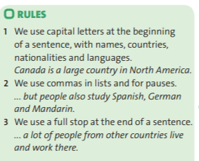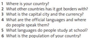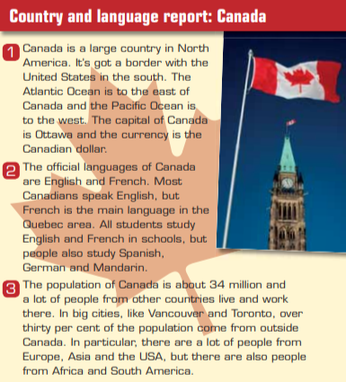 Read for general meaning and specific detail. Give a short information about Canada . Ask and answer correctly all questions Write personal sentences about your country . |