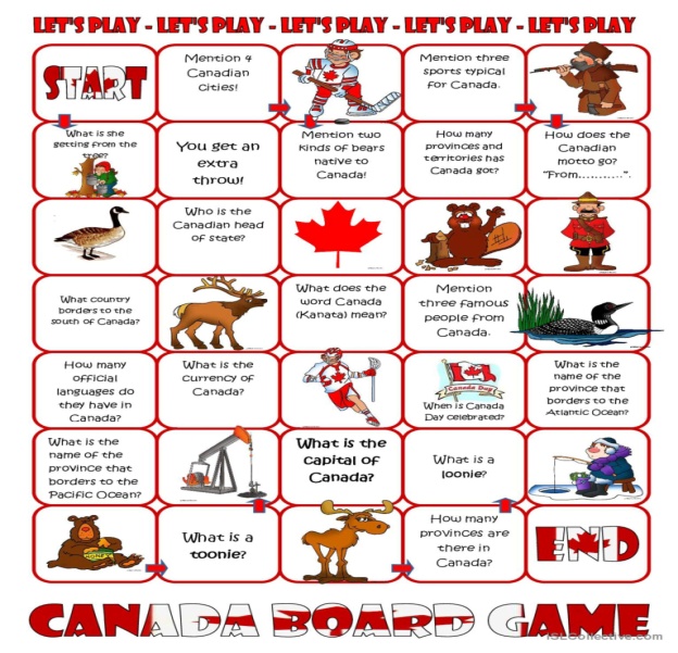 Ss plays Canada board game. Chooses 1- card and answer the questions.