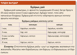 8.1.3.1 оқу-еңбек тақырыптарына байланысты күрделі сөздер мен тұрақты тіркестердің мағынасын түсіну; 8.5.1.3 етістіктің бұйрық рай қызметін білу, ауызша және жазба жұмыстарда орынды қолдану |