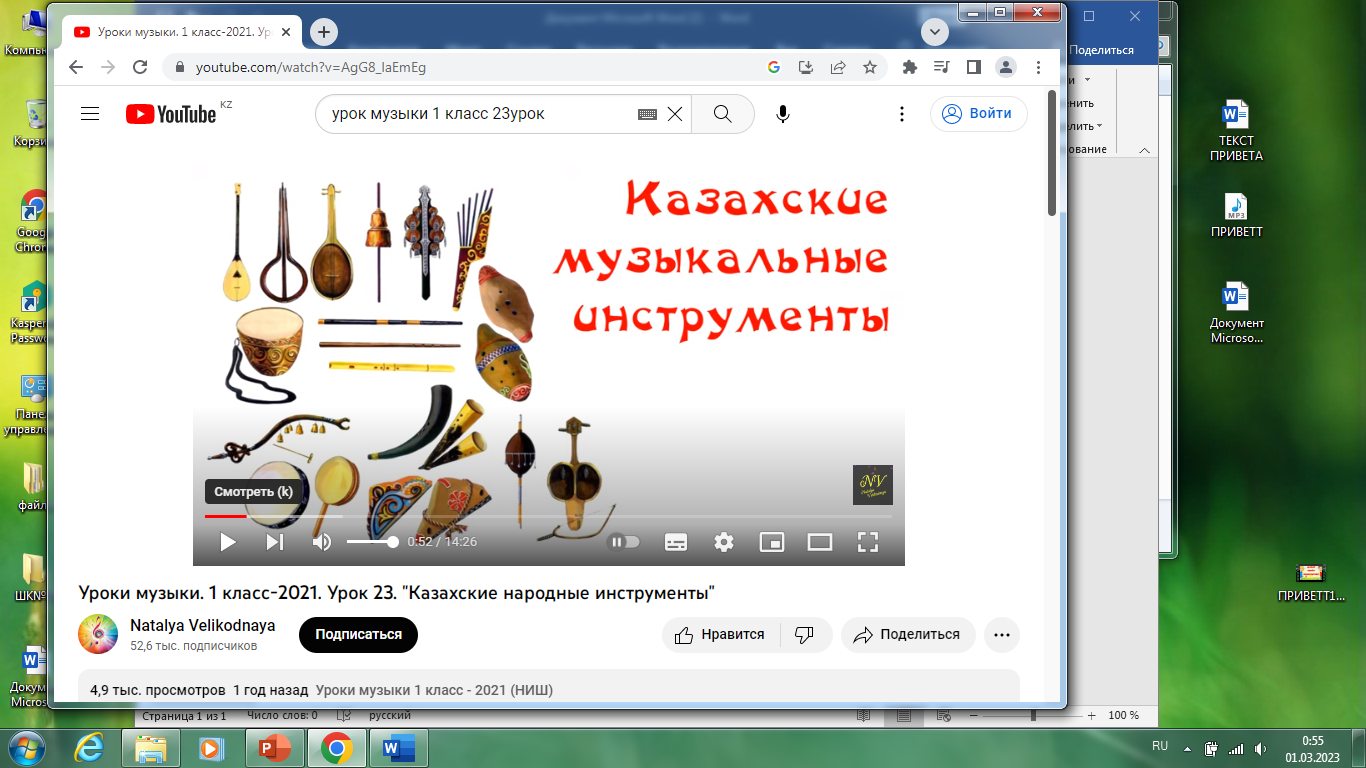 КСП 1 класс,урок музыки тема Казахские народные инструменты