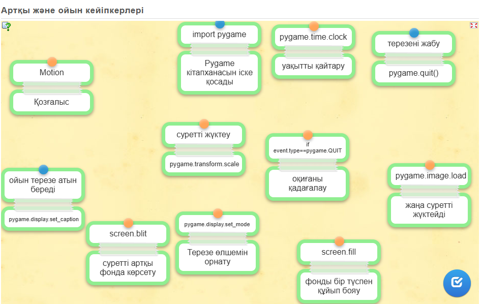 Карточка парағы Падлет тақтада қалдырып оқу https://padlet.com/shinarr2024/9-pygame-m77bys2d2lqplt72 |