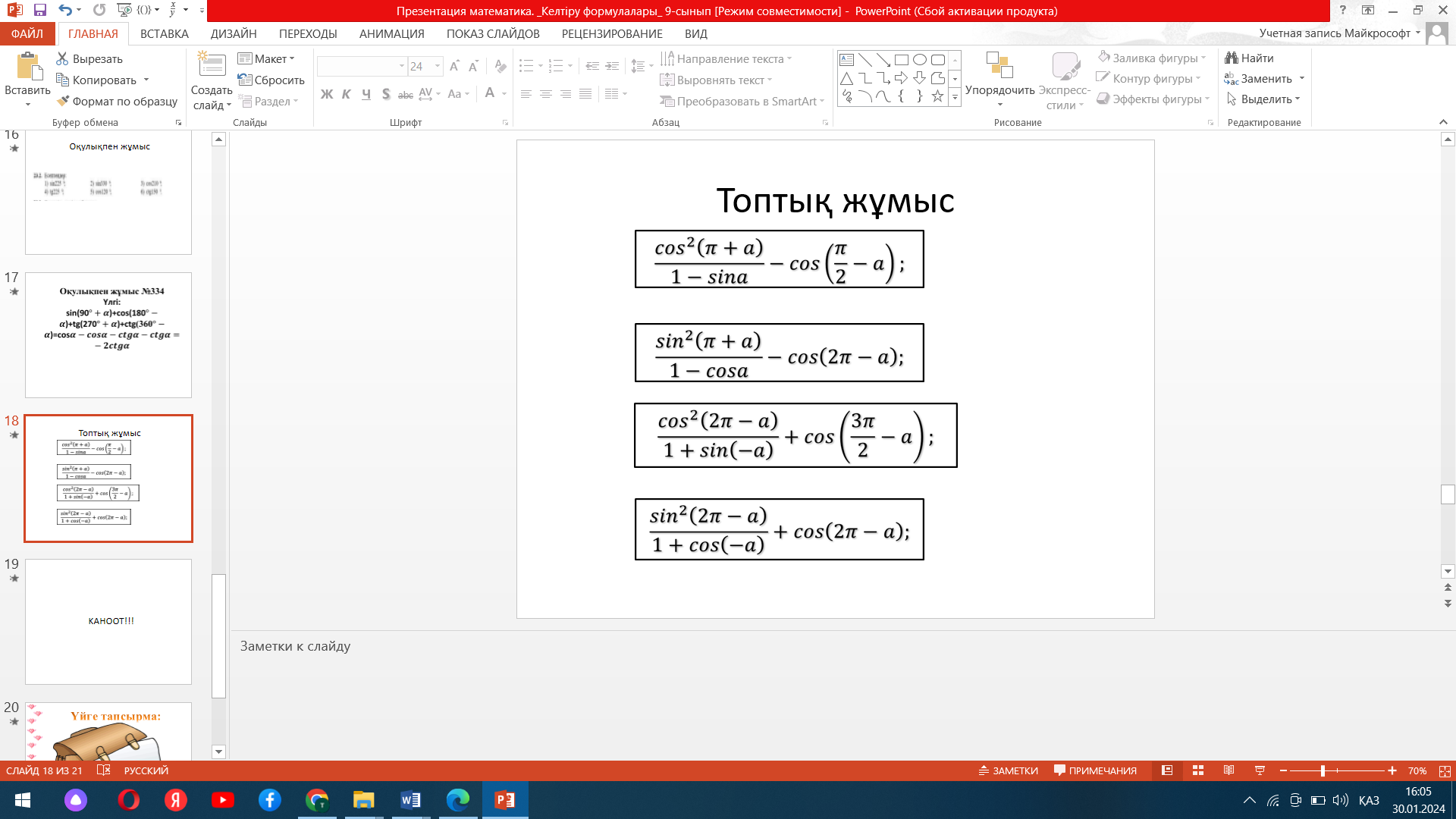 Үй тапсырмасы интерактивті тақтада көрсетіледі. Өткенді қайталау. «Миға шабуыл»