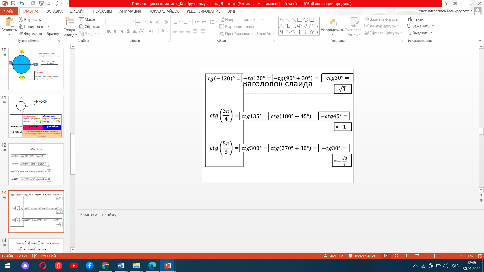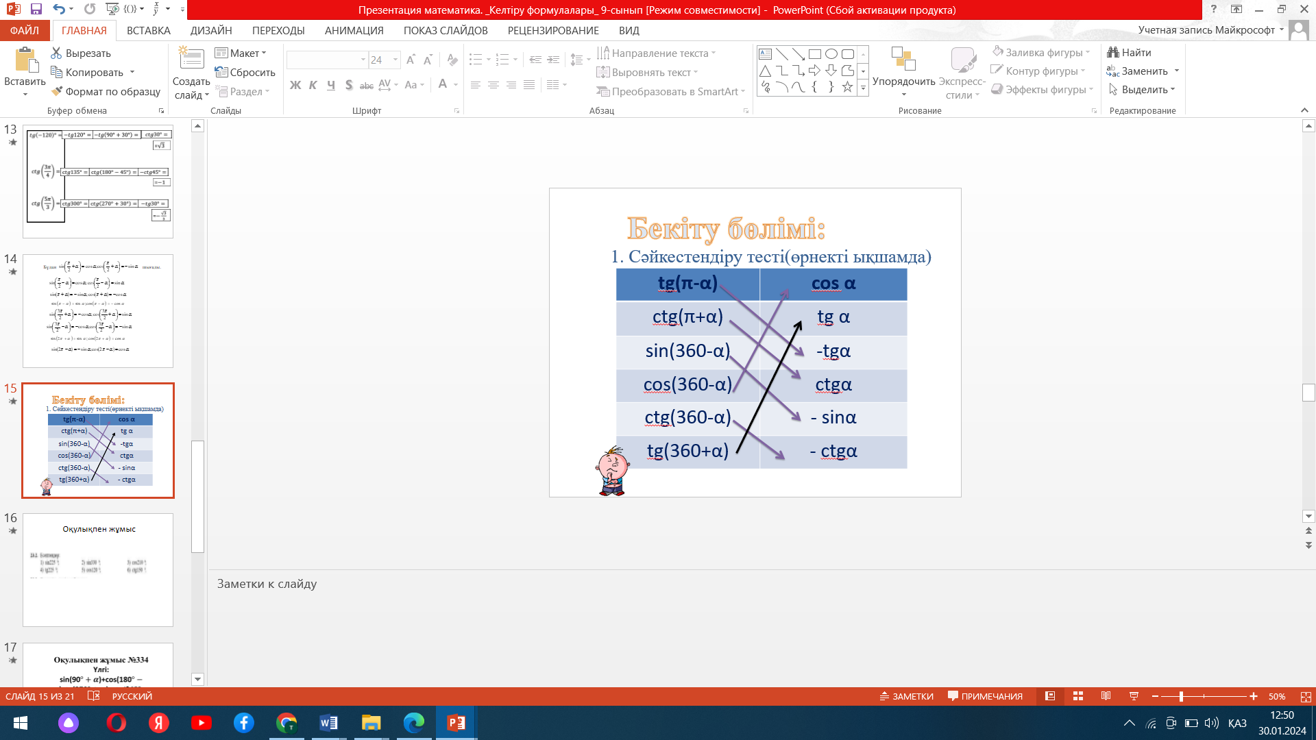 Келтіру формулалары. Ашық сабақ