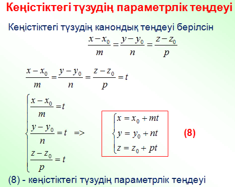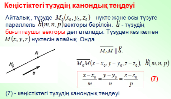 Кеңістіктегі түзудің теңдеуі |