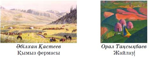 Олардың репродукцияларымен таныстыру. Тапсырма: Оқулықтағы екі кескіндемелік суретті салыстыруға береді.