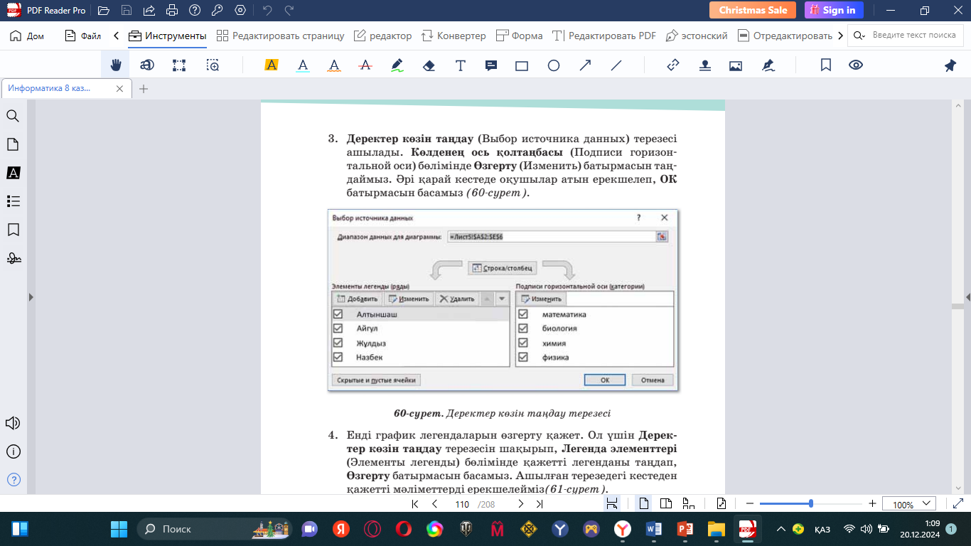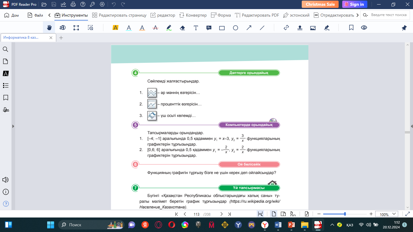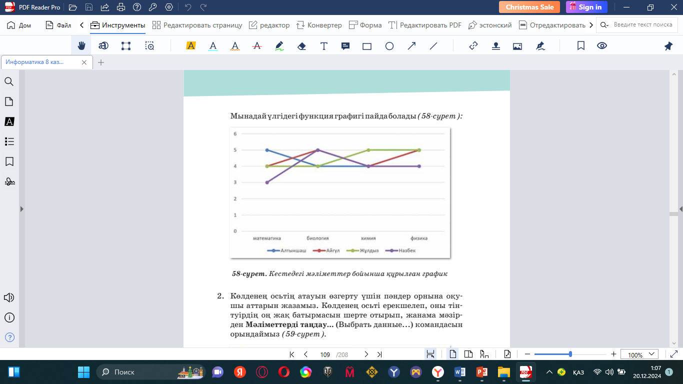 8.2.2.3 электрондық кестелерді қолдану арқылы есептерді шешу үшін кірістірілген функцияларды пайдалану. |