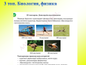 3 топ Төменде берілген суреттердегі физикалық денелердің жылдамдығының кестесін құрастырады. Құрастырған кесте бойынша «Цилиндрлік» гистограмма жасайды.